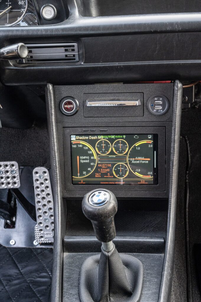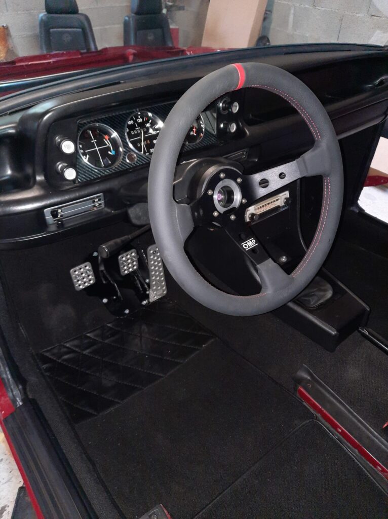 Manufacturing of a specific central console with a hide Android tab. it displays all the engine information. The tablet communicates via Bluetooth with the injection box. I didn’t want to add lot of gauges and be able to maintain a very sober, vintage and sporty interior.