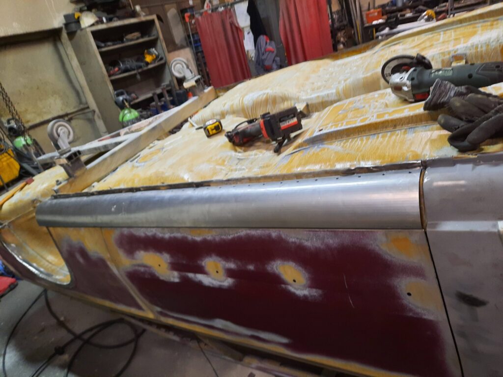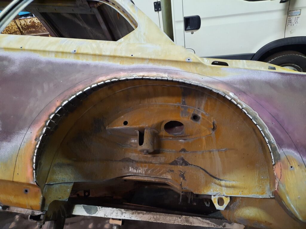 Modification of the rocker panels, addition of BMW 2002 turbo flare and modification of these to adapt to the new shape of the rocker panels.