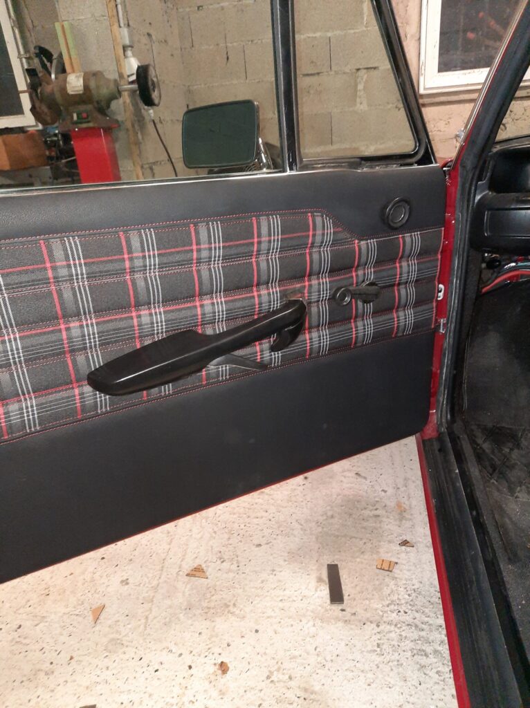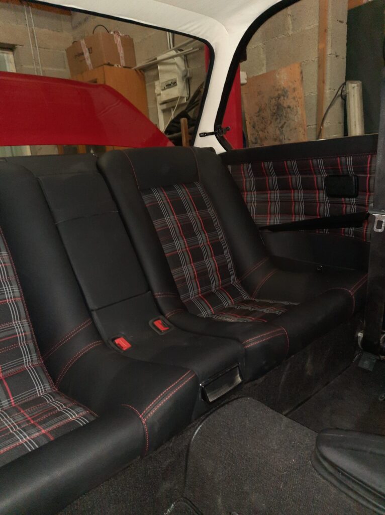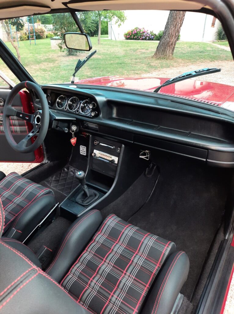 All seats have been rebuilt with leather and tartan: installation of front Recaro seat from Alfa Romeo and for the rear, it is a 635 CSI Recaro bench seat.